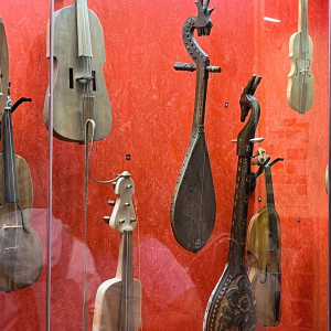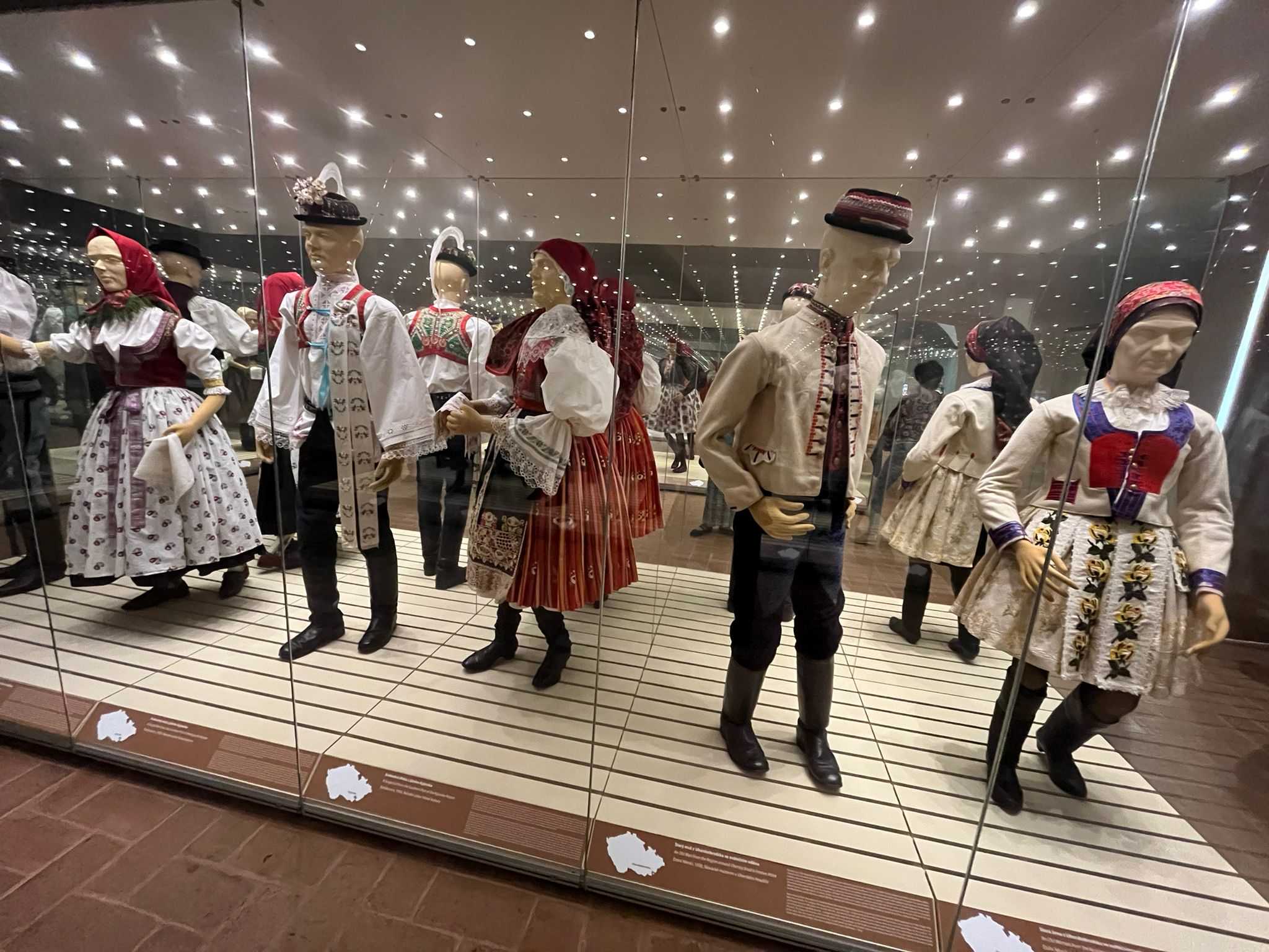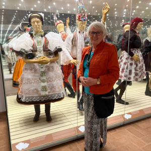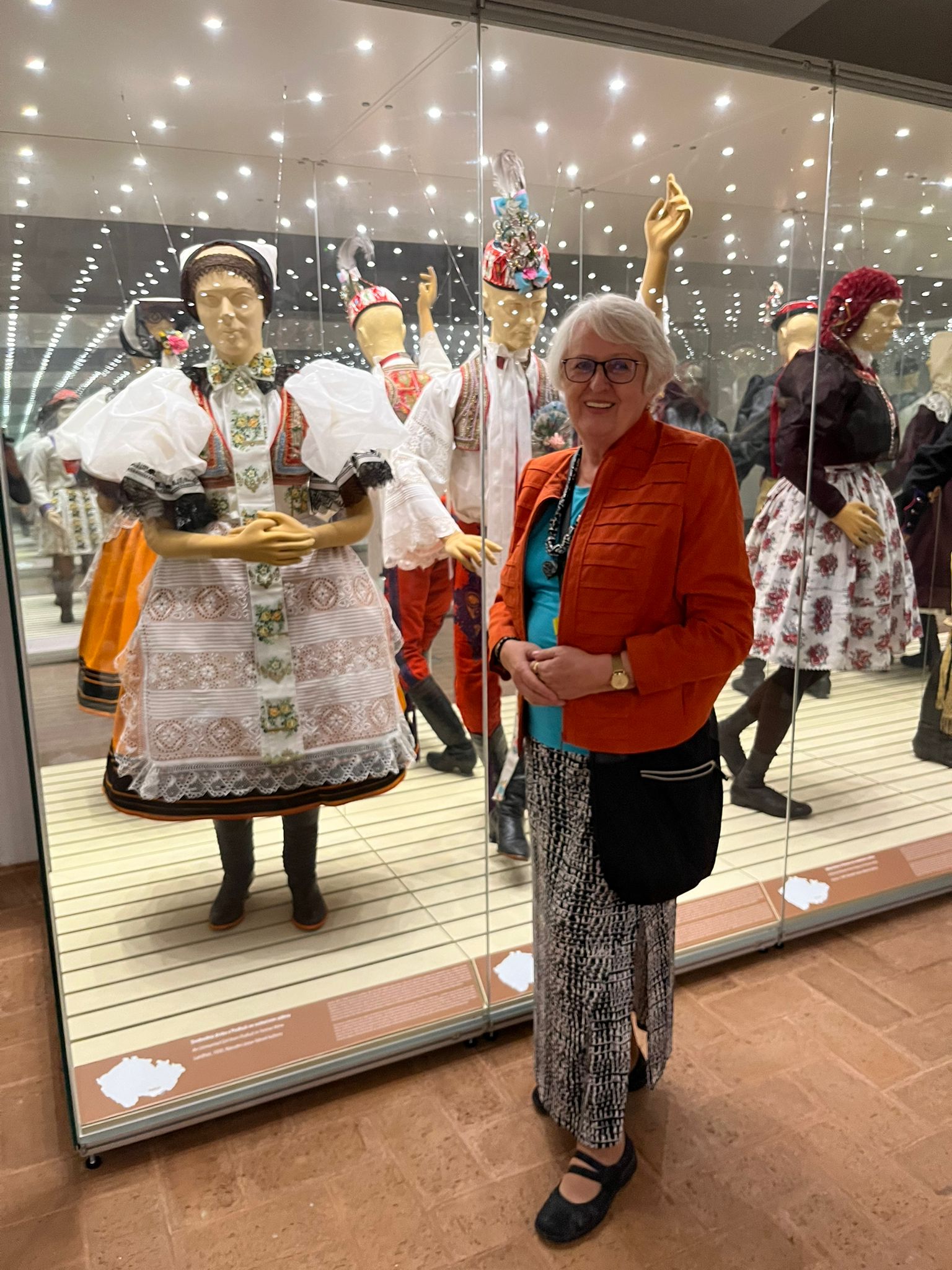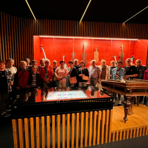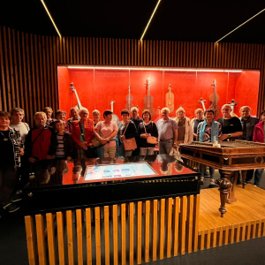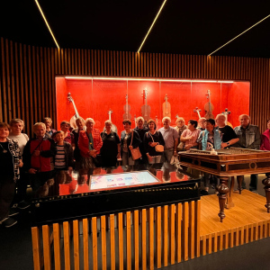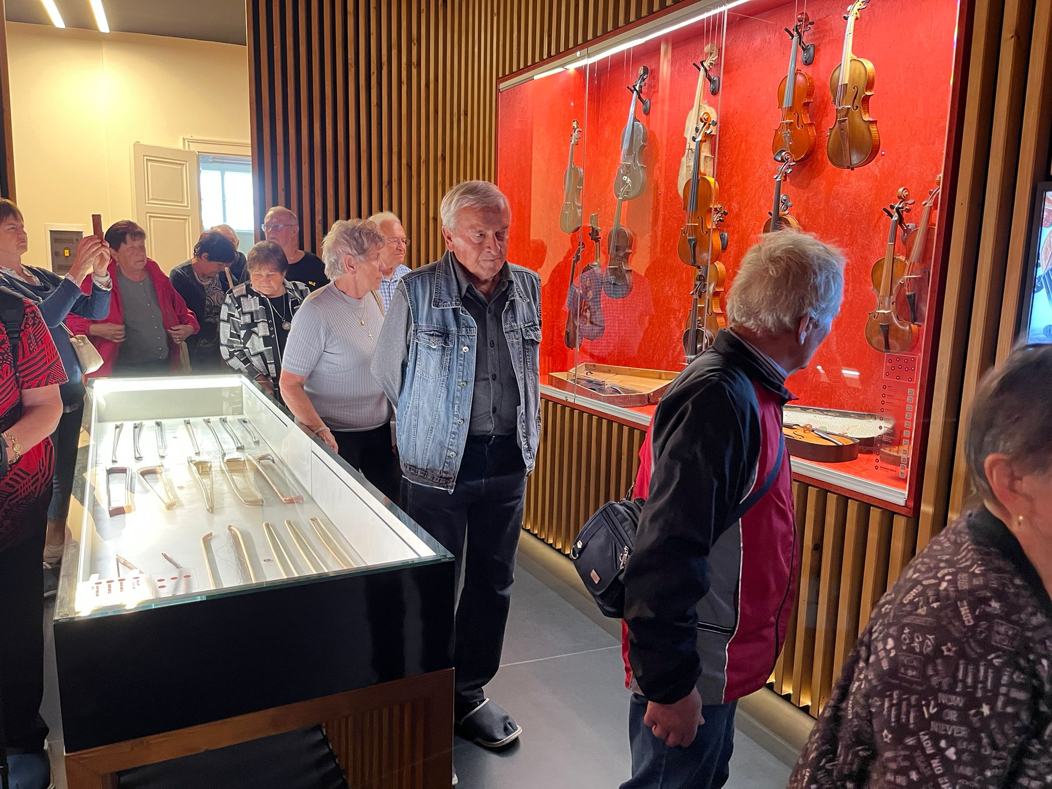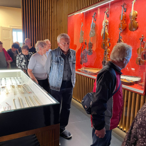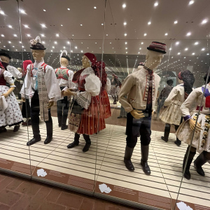 V zámku Strážnice sídlí Národní ústav lidové kultury. Součástí prohlídky byla mimo jiné i expozice nástrojů lidové hudby a krojů.