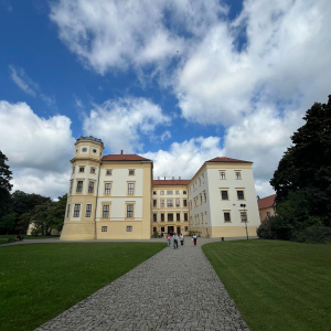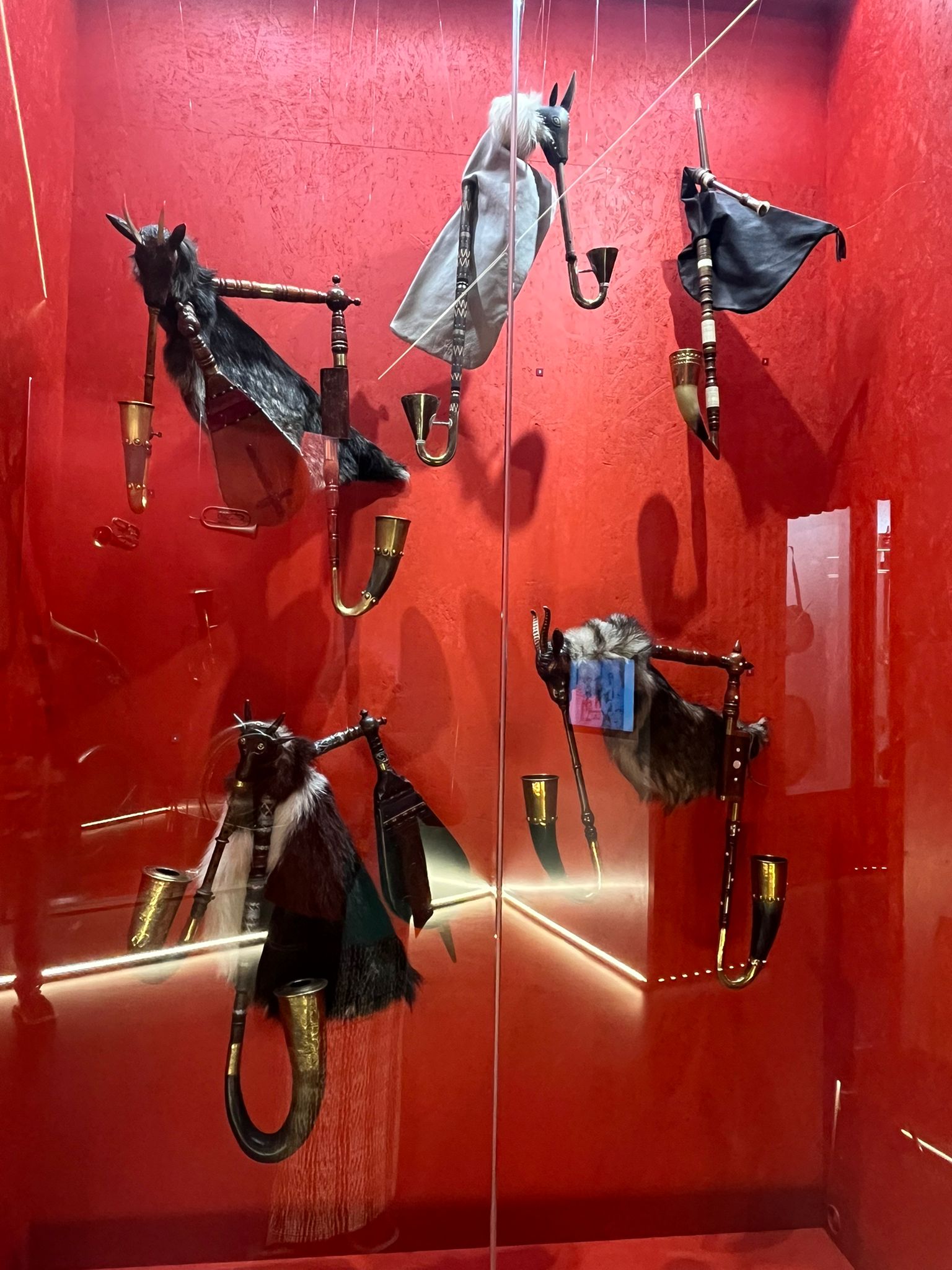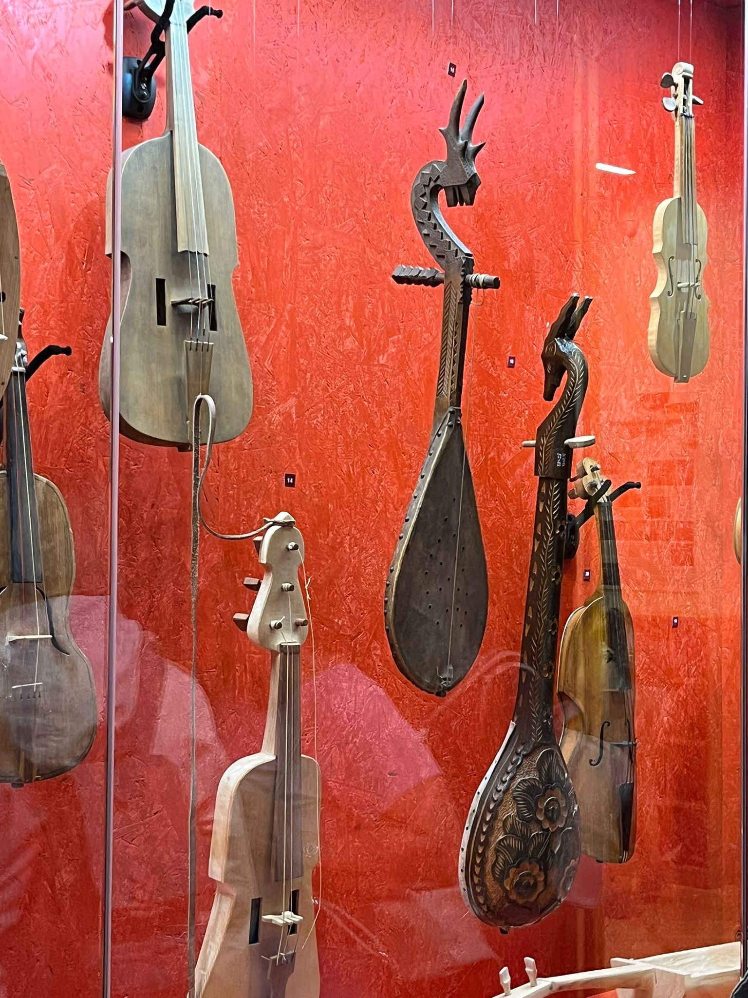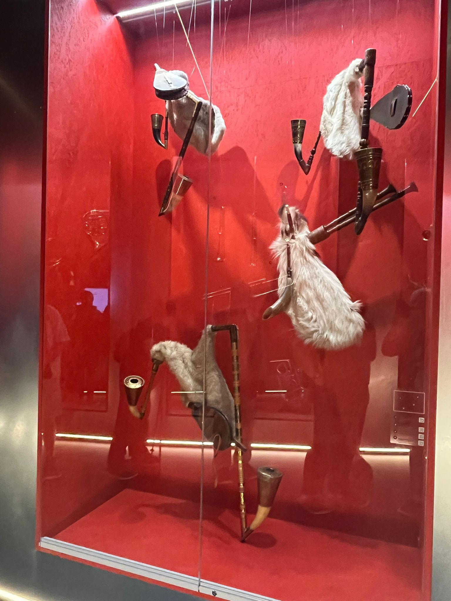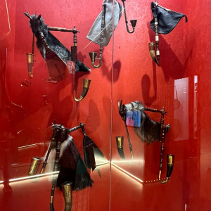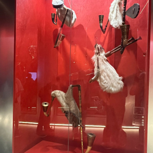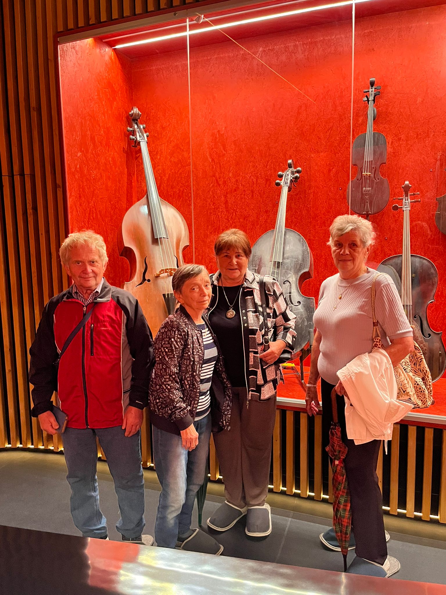 V zámku Strážnice sídlí Národní ústav lidové kultury. Součástí prohlídky byla mimo jiné i expozice nástrojů lidové hudby a krojů.