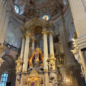 Křtiny - barokní poutní kostel Jména Panny Marie (architekt Jan Blažej Santini), vyhlášený v roce 2008 národní kulturní památkou ČR.