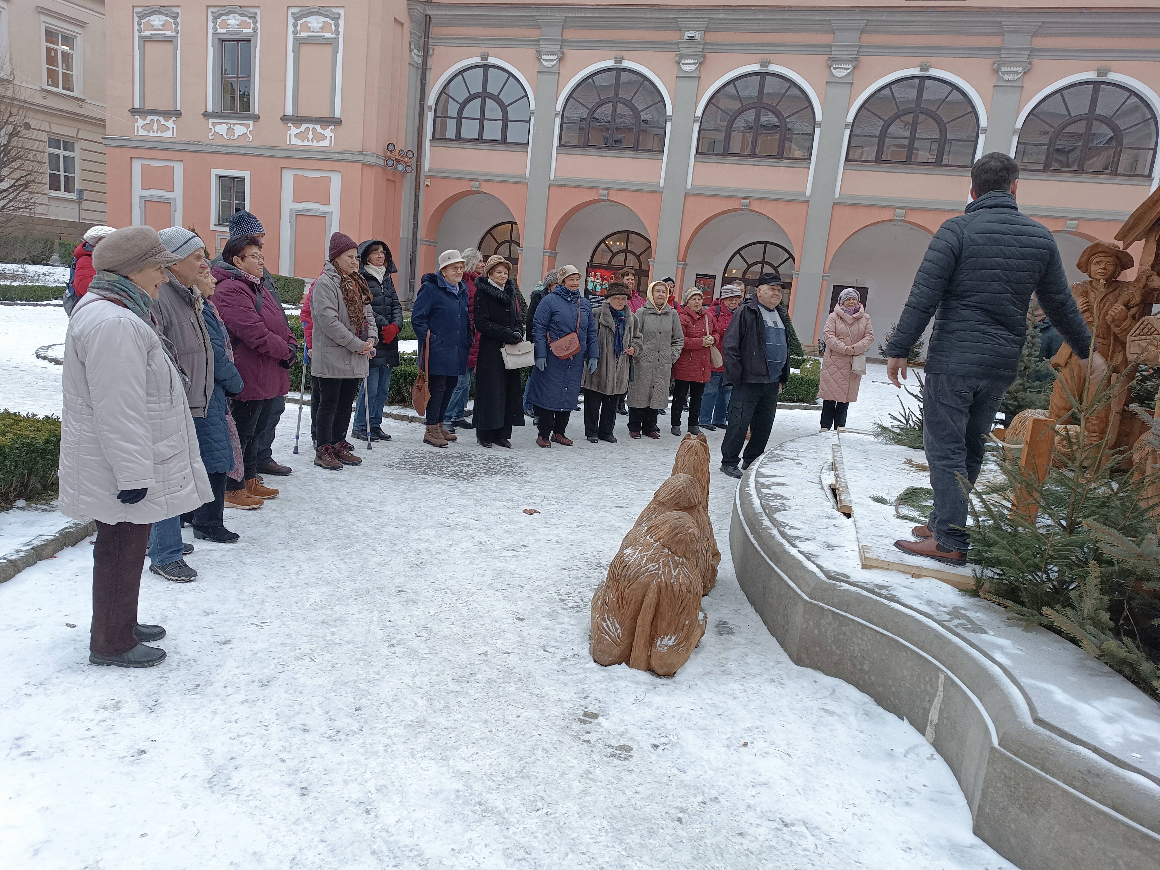 Návštěva komentované výstavy exotických betlémů se uskutečnila ve čtvrtek 8. ledna 2026 v MaGC (Muzejní a galerijní centrum) v zámku Žerotínů. Věnoval se nám Jan Anlauf, který nás seznámil s historií betlémů i se zajímavostmi exotických betlémů ze všech světadílů.